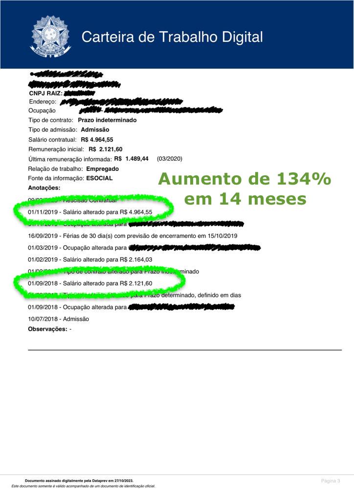 Onde muitos viam desvantagens, ela viu oportunidades: Em apenas 4 anos, saltou de analista a diretora, conquistando aumentos salariais que muitas mulheres buscam por uma vida inteira. Em 4 meses, viu seu salário saltar de 2k para 10k. E, em apenas 7 meses, esse número pulou para impressionantes 20k+.